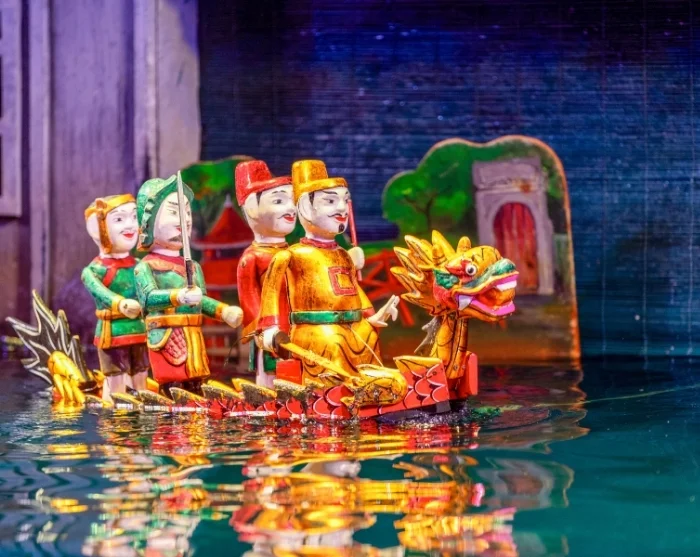 Dagens sightseeingtur rundes af med en forestilling i vanddukketeater, som er en flere hundrede år gammel vietnamesisk tradition, hvor dukker danser på vandets overflade til levende musik og klassisk fortælling.