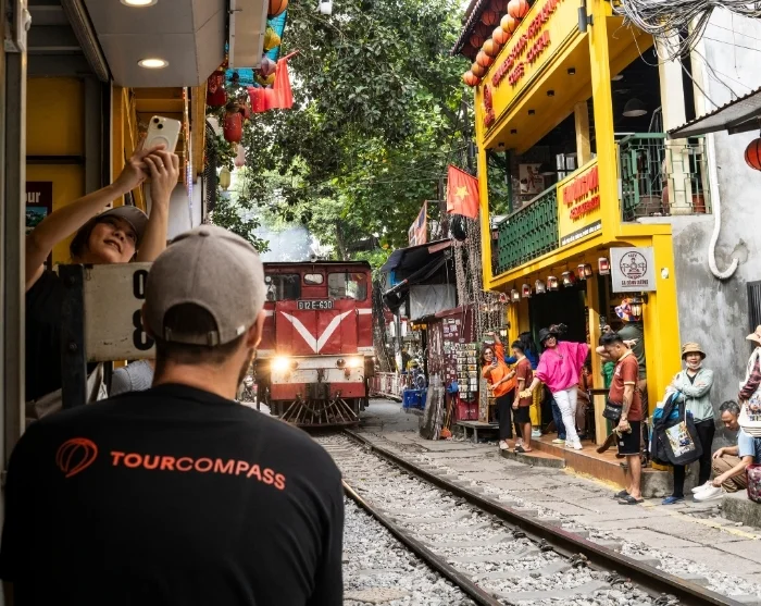 Du lander i Hanois internationale lufthavn, Noi Bai, hvor du går gennem immigrationen og henter din bagage. Din guide venter udenfor ankomsthallen efter udgangsdørene. Guiden er iført en TourCompass-uniform og holder et TourCompass-skilt, så du lettere kan finde ham eller hende.