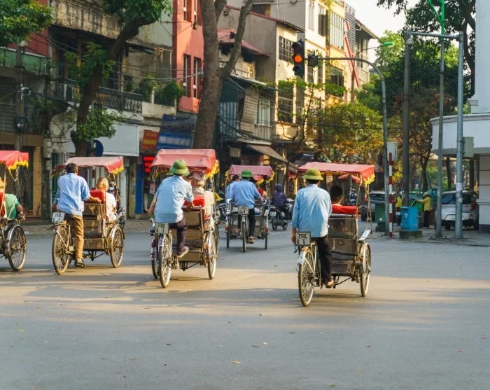Turen fortsætter i en traditionel cykeltaxa – også kaldet en cyclo – gennem det gamle kvarters labyrint af smalle gader og livligt handelsliv. Det gamle kvarter er kendt for sine 36 gader, som oprindeligt blev opkaldt efter de varer, der blev solgt her: bambus, silke, papir og blik. I dag lever mange af gadens navne videre, og stemningen emmer af lokal charme, hvor hanoianerne stadig handler, småsnakker og serverer dampende pho fra gadekøkkenerne.