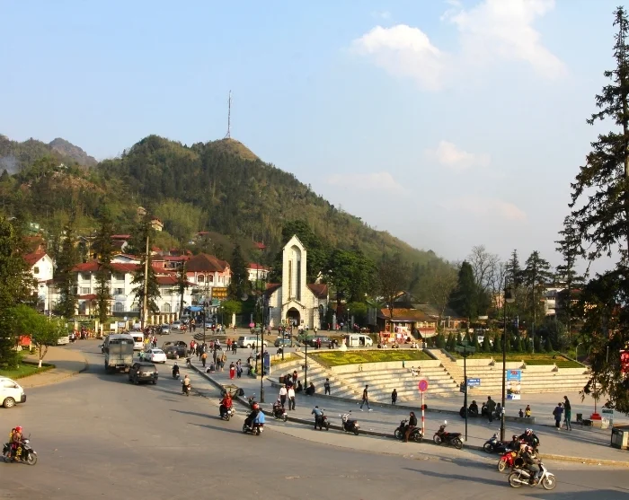Du har morgenen og formiddagen på egen hånd, og her kan du lægge vejen forbi det centrale torv ved den gamle stenkirke, et af Sapas vartegn. Her sælger kvinder fra Hmong- og Dao-stammen farverigt håndværk som broderede tasker, tørklæder og smykker iført deres karakteristiske, farverige klædedragter. Det er et oplagt sted at finde en personlig souvenir eller blot nyde stemningen og betragte Sapas lokale hverdagsliv.