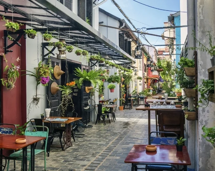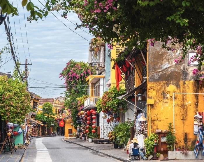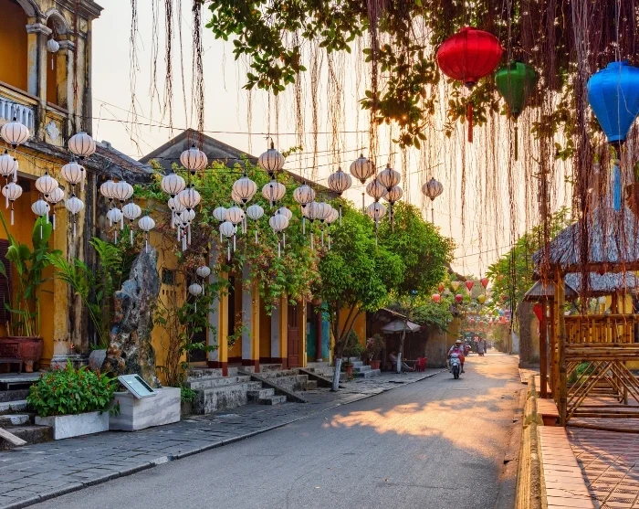 Væk fra floden breder en labyrint af små stemningsfulde gader sig. Her mødes du af et farverigt miks af japanske træhuse, kinesiske forsamlingshuse, franske kolonitidsbygninger og de karakteristiske købmandshuse. Farverige lanterner hænger som guirlander over gaderne og skaber en særlig stemning, især når mørket falder på. Butikker, gadekøkkener, caféer og små restauranter ligger som perler på en snor og indbyder til afslappede stunder og nysgerrige opdagelser.
