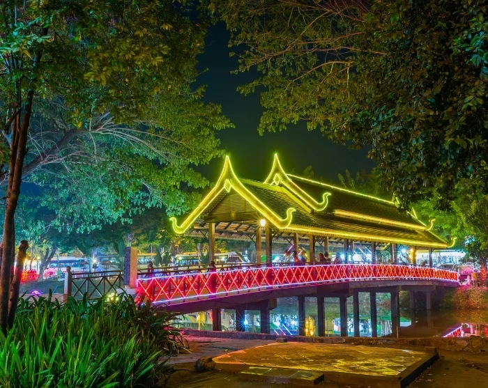 Om aftenen kan du gå på opdagelse på natmarkedet og finde de sidste souvenirs eller smage dig gennem det store udvalg af lokale retter.