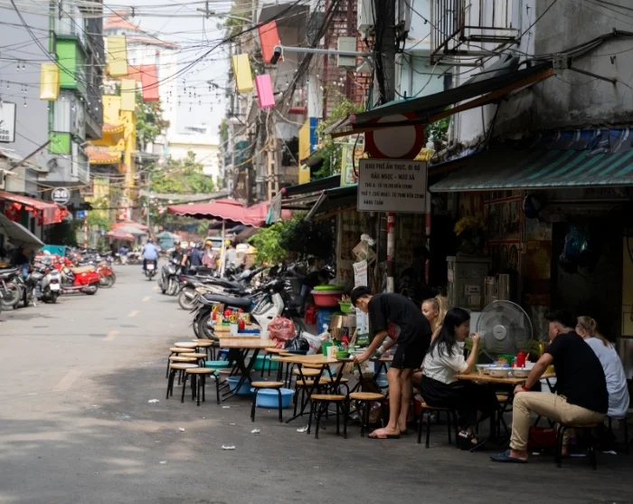 Turen fortsætter i en cykeltaxa – også kaldet en cyclo – gennem det gamle kvarters labyrint af smalle gader og livligt handelsliv. Det gamle kvarter er kendt for sine 36 gader, som oprindeligt blev opkaldt efter de varer, der blev solgt her: bambus, silke, papir og blik. I dag lever mange af gadens navne videre, og stemningen emmer af lokal charme, hvor hanoianerne stadig handler, småsnakker og serverer dampende pho fra gadekøkkenerne.