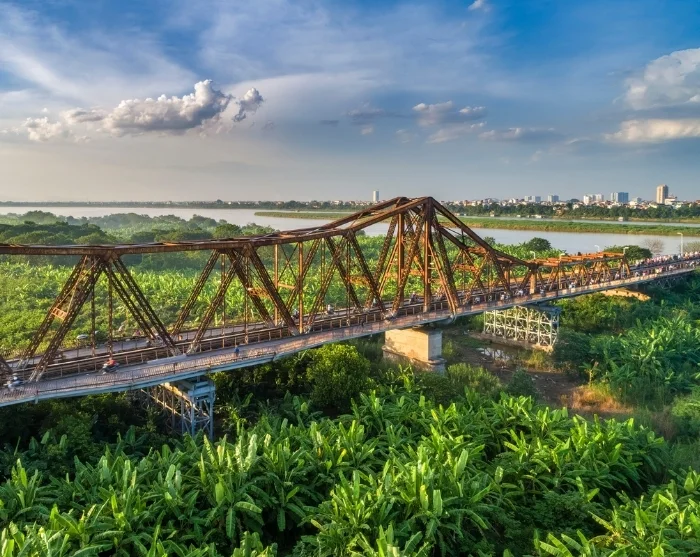 Efter en spændende cyclotur besøger du den historiske Long Bien-bro, som er et ikonisk vartegn fra den franske kolonitid, opført i begyndelsen af 1900-tallet. Den karakteristiske jernbro strækker sig over den Røde Flod og blev kraftigt beskadiget under Vietnam-krigen, men står i dag som et stærkt symbol på Hanois modstandskraft. Broen er forbeholdt tog, cyklister og fodgængere og byder på en stemningsfuld oplevelse. Her kan du møde lokale, der cykler på arbejde eller sælger frugt ved skinnerne, og nyde udsigten til små, grønne flod-øer med dyrkede marker midt i storbyen – et populært motiv for fotografer og rejsende, der ønsker at indfange Hanois sjæl.