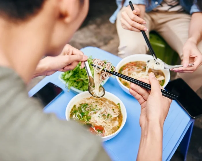 Til frokost kan du gå på jagt efter Hanois berømte streetfood. Prøv en dampende skål pho, nyd duften af grillede bun cha eller tag en sprød banh mi med på farten.