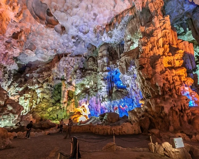 Turen fortsætter til Sung Sot-grotten, som er Ha Long-bugtens største og mest imponerende drypstenshule. Her belønnes du med et magisk indre landskab af stalaktitter og stalagmitter, som har taget millioner af år at forme. Vi anbefaler gode, lukkede sko, især i vådt vejr.