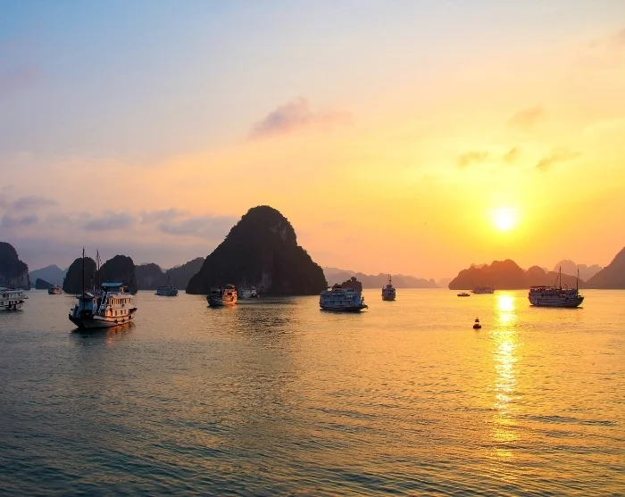 Fra Hanoi går turen til Ha Long-bugten, hvor et minikrydstogt venter. Kalkstensklipperne rejser sig dramatisk op af havet, og du besøger grotter, perlefarme og smukke udsigtspunkter.