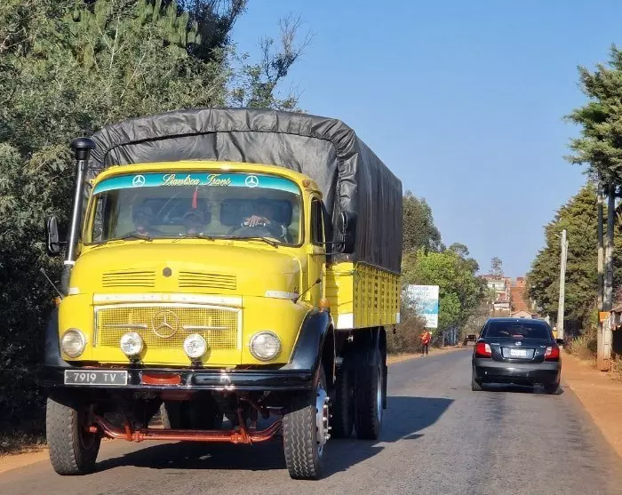 Efter et par timers kørsel gen nem det let bakkede plateaulandskab med de mange rismarker, skifter landskabet. Bakkerne bliver højere, og skovene tættere. Chaufføren navigerer øvet gennem hårnålesvingene, og hist og her kan du skimte floden i bunden af dalene. Trafikken gilder fint – indtil den ikke gør det mere. Gamle Mercedes Benz-lastbiler fra franskmændenes tid holder skødesløst parkeret i vejkanten og forsinker indimellem trafikken. Eller en lille vejbod er så populær, at trafikken går helt i stå. ”Mura mura”, som de siger i Madagaskar – bare tag det roligt.