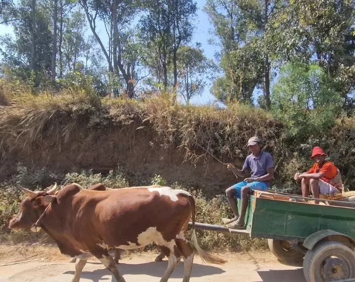 Du vil helt sikkert også lægge mærke til køerne, zebuerne. De er alle steder: på vejen, i markerne, i indkørslerne, i haverne. De ligner den karakteristiske indiske ko med en fedtpukkel i nakken, men zebuen er dog ikke hellig på samme måde som i Indien. I Madagaskar må man gerne spise zebuen, og det skulle du tage at gøre, for den smager fremragende. Særligt når kødet er tilberedt med masser af tomater, løg, hvidløg og ingefær. Spørg efter “romazava” – det spises naturligvis med ris til.