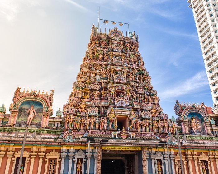 Herefter besøger du Sri Kandaswamy-templet, som blev bygget i begyndelsen af det 20. århundrede og er dedikeret til Lord Murugan. Templet er kendt for sin imponerende arkitektur, der kombinerer traditionel sydindisk stil med farverige og detaljerede udsmykninger. Templet er et fredfyldt og spirituelt sted, der giver dig en dyb indsigt i hinduismens traditioner og praksisser, og hvis du lyst, har du muligheden for at deltage i bøn.