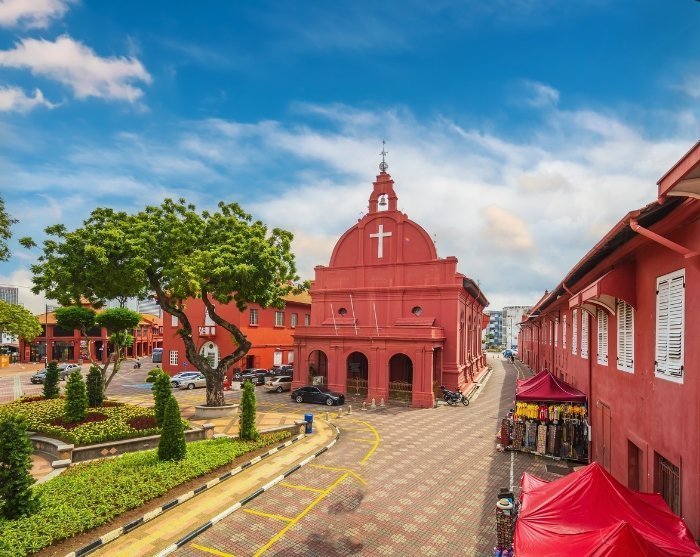 Herefter fortsætter du turen til den charmerende plads Dutch Square, der er omgivet af blomstrende haver, smedejernslygtepæle og de karakteristiske, rødfarvede bygninger, der straks fanger dit øje. Her kan du bl.a. opleve den 300 år gamle Hollandske Kirke, der er Malaysias ældste protestantiske kirke.
