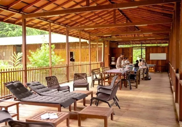 På lodgens store træveranda serveres måltiderne, som består af lokalt inspirerede retter tilberedt med friske ingredienser, hvis smage forstærkes af de eventyrlige omgivelser. Mens maden nydes, kan du udveksle historier og oplevelser med andre rejsende og se frem til en aften, hvor du kan tilbringe tid med Iban-familierne og lære om deres kultur og traditioner. Om aftenen, når det er tid til at gå til ro, kan du trygt falde i søvn til nattens beroligende lyde fra regnskoven og flodens stille rislen.