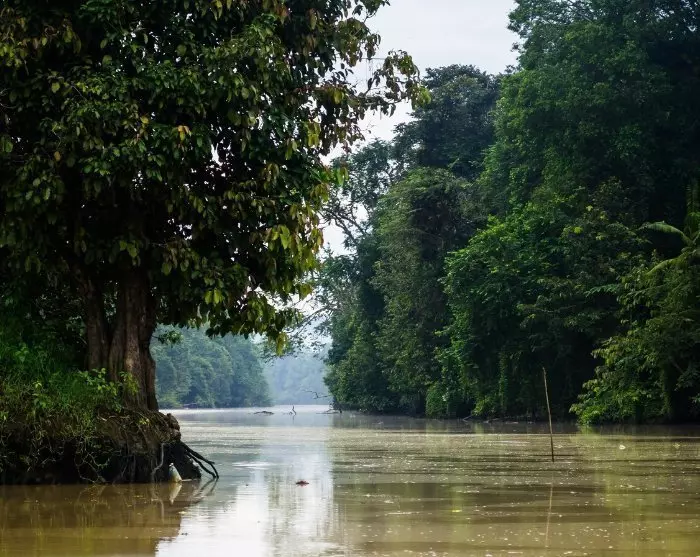 I Sabah kan du opleve de magiske regnskove, når du sejler på Kinabatangan-flodens snoede veje. Hvis du er heldig, kan du høre aberne brøle i det fjerne eller se en deltakrokodille stikke snuden op ad vandet.
