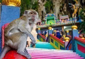 Lidt uden for Kuala Lumpur ligger en af Malaysias største seværdigheder, kalkstensgrotterne Batu Caves.