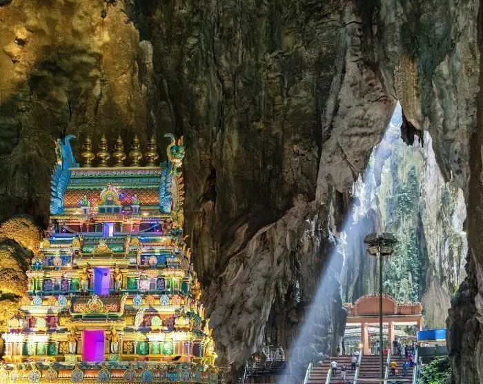 Du kan også trykke på pauseknappen og lade dig fordybe i Kuala Lumpurs grønne oase, Perdana Botanical Gardens. Her kan du nyde en fredfyldt atmosfære blandt mange duftende blomster og et imponerende fugleliv. En anden stor naturoplevelse finder du ved Batu Caves lidt uden for bymidten. Her venter en enorm kalkstensgrotte prydet med farvestrålende hinduistiske templer, godt bevogtet af den gigantiske Lord Murugan-statue. At bestige de mange regnbuefarvede trin mod toppen, mens du langsomt omfavnes af historiens vingesus og grottens kølige luft, er en oplevelse, der er værd at samle til mindebogen.