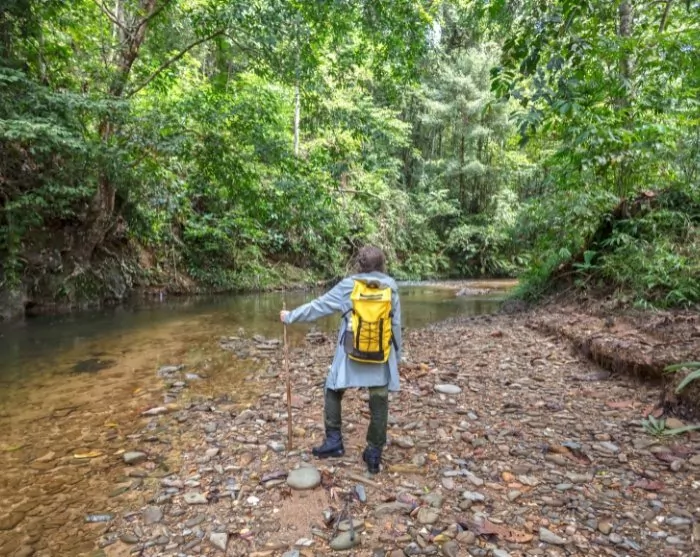 For dit ophold i regnskoven behøver du ikke alverdens ting. Pak gerne let i en rygsæk eller mindre taske og lad kufferten blive tilbage på hotellet. Herfra bliver du hentet og kørt omtrent 5 timer mod Batang Ai Nationalpark med et stop undervejs ved Lachau Bazaar, hvor du kan slentre rundt mellem småbutikker og et lille lokalt marked. Du kan nyde en tidlig frokost i en af de hyggelige, lokale kaffebarer, inden turen går videre mod Batang Ai-søen. Her går du ombord i en traditionel langbåd, som sejler dig væk fra civilisationen til Iban-stammens hjem ved flodbredden, hvor selv mobilsignalet må se sig slået af den uforstyrrede natur. Sejlturen tager ca. 1,5 time.
