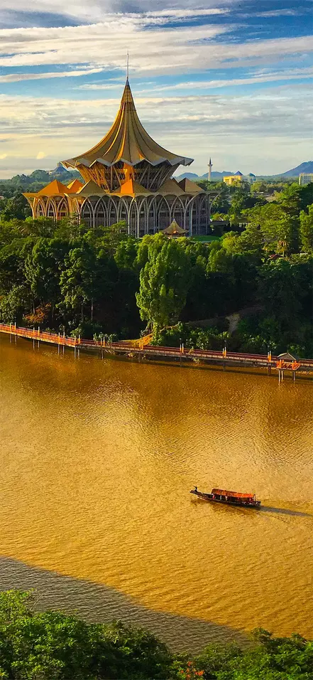 Med sin smukke beliggenhed ved Sarawak-floden byder Kuching på en næsten kilometerlang promenade, der inviterer dig til at tage del i det lokale liv med alverdens butikker og restauranter. Om aftenen er det oplagt at finde dig til rette ved et af de mange spisesteder i den gamle bymidte, der lokker med alt fra internationale favoritter til lokale specialiteter, som den smagfulde laksa-suppe og nudelretten kolo mee. Efterfølgende kan du slentre langs promenaden og blive betaget af Kuchings vand og lysshow, der udspiller sig hver aften ved 20-tiden foran Sarawaks regeringsbygning.