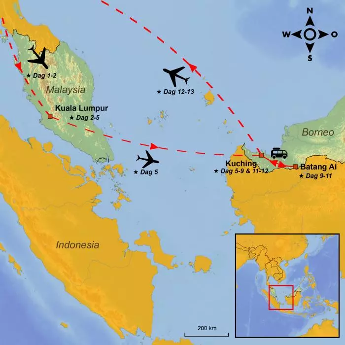 Du begynder din rejse i Malaysias charmerende hovedstad, Kuala Lumpur, og fortsætter i den malaysiske stat Sarawak på Borneo, hvor der venter dig uforglemmelige minder og en dybere kulturel forståelse for denne fascinerende del af verden.