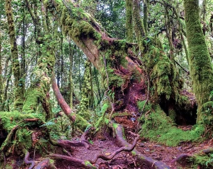 Du går ad stier lavet af træplanker, grus eller naturligt terræn, som fører dig gennem det tætte, tågede landskab. Her får du indblik i skovens biodiversitet med blandt andet kødædende planter, sjældne orkidéer og en række fuglearter. Undervejs er der flere udsigtspunkter, og på klare dage kan du beundre udsigten over de vidstrakte teplantager, de omkringliggende bjerge og dale.