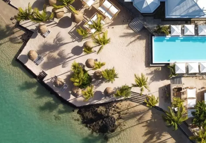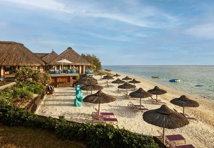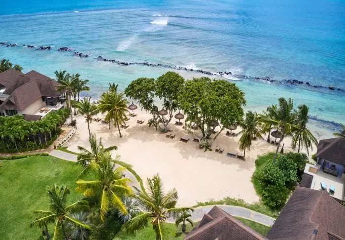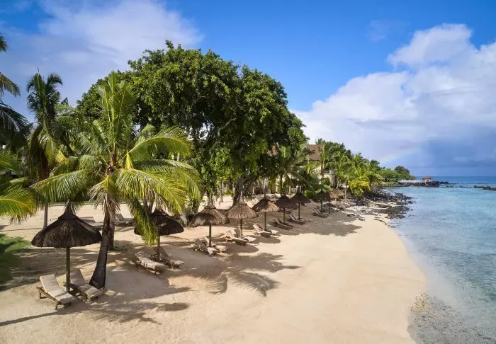 Hotellet ligger ved en af Mauritius’ smukkeste strande, Palmar Beach. Tænk kridhvidt sand og turkisblåt hav.