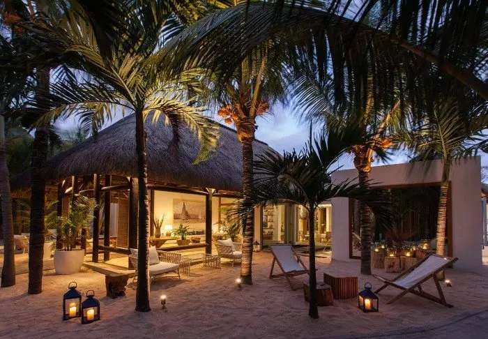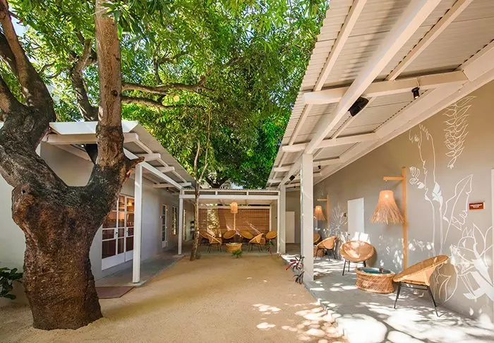 Her er ingen høje mure eller elektriske porte. I stedet er der hængekøjer, sand på gulvet i lobbyen og en hyggelig, charmerende og intim stemning.