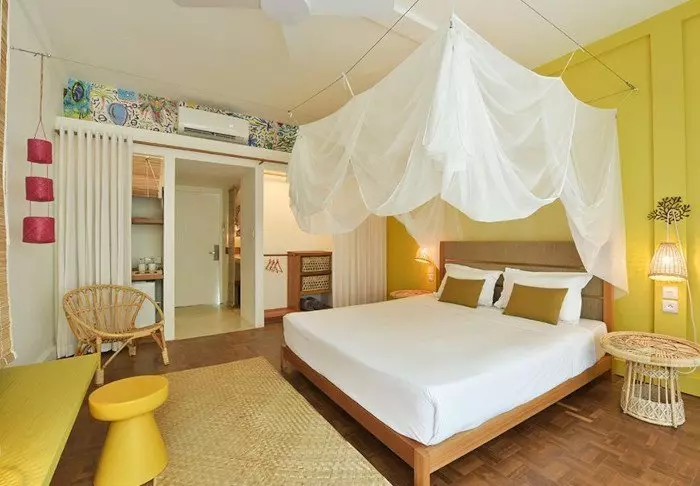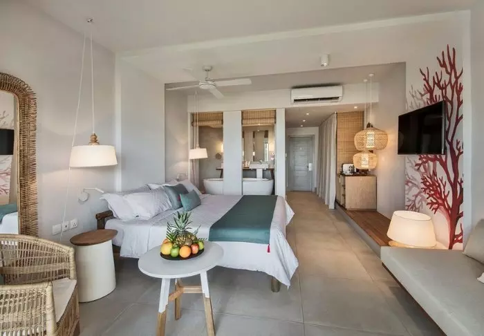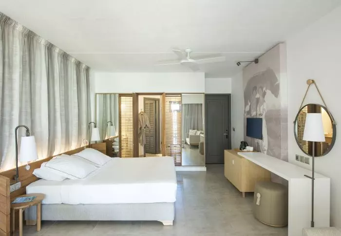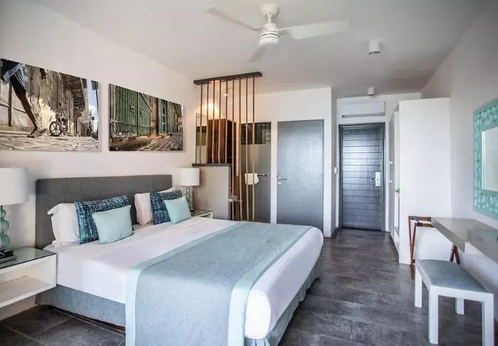Hotellet har 116 værelser, som alle har eget badeværelse, aircondition, te- og kaffefaciliteter, minibar og gratis wi-fi. Værelserne er meget hyggelige, og indrettet med god brug af farver og virker både indbydende, moderne og retro på én gang. Alle værelser har egen balkon/terrasse. Hvert værelse er tillige udstyret med et ”strand-sæt” bestående af en kurv med håndklæder og strandmåtter, og du får også din egen køletaske.