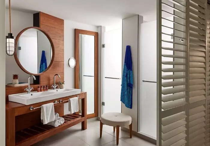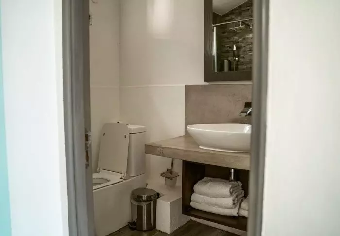 De rummelige badeværelser har separat brusekabine med glasdøre, badekar og toilet. Endvidere er der hårtørrer, stik til barbermaskine samt walk-in wardrobe.