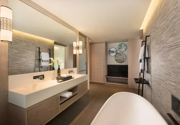 Alle 172 har egen balkon eller terrasse og alle er udstyret med espressomaskine, gratis wi-fi, fladskærms-tv, og et lækkert badeværelse med BÅDE bruser og badekar.