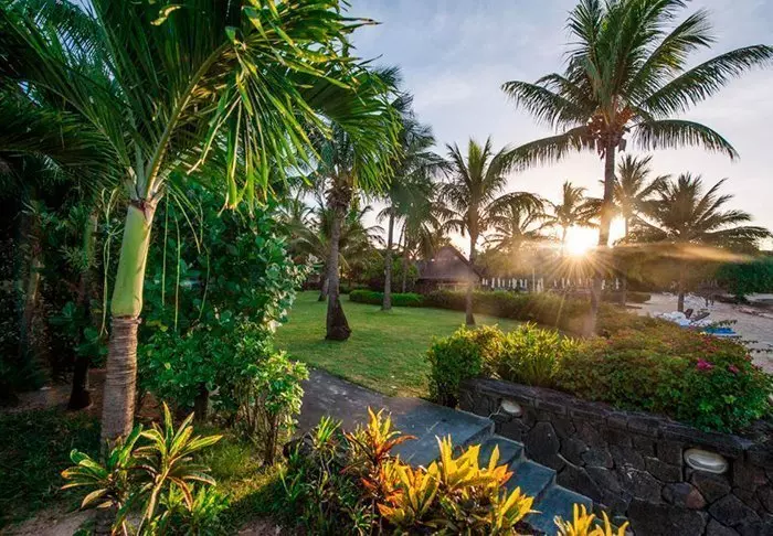 Selve stranden ligger for enden af den store frodige have, hvor du finder værelserne.