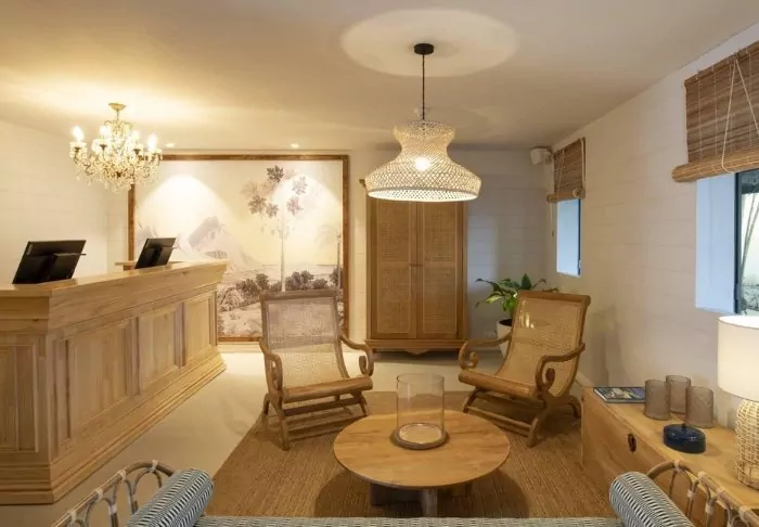 Selve hotellet er enormt charmerende – en slags moderne kolonistil. Grønne planter, træskodder, bambusmøbler og lyse farver præger indretningen i både lobby og restaurant. Den lange infinity pool er placeret i resortets midte, og tættest på stranden ligger den meget hyggelige strandbar/restaurant. Lige nedenfor strandbaren finder du “bådhuset”, hvor du kan låne kajakker eller paddleboard. Det er også herfra, du kan hoppe på den gratis “taxa-båd”, som sejler dig ind til centrum af Grand Baie. Med maverne – eller shoppingposerne – fyldte kan du nemt slentre hjemad til hotellet igen på under 15 minutter.