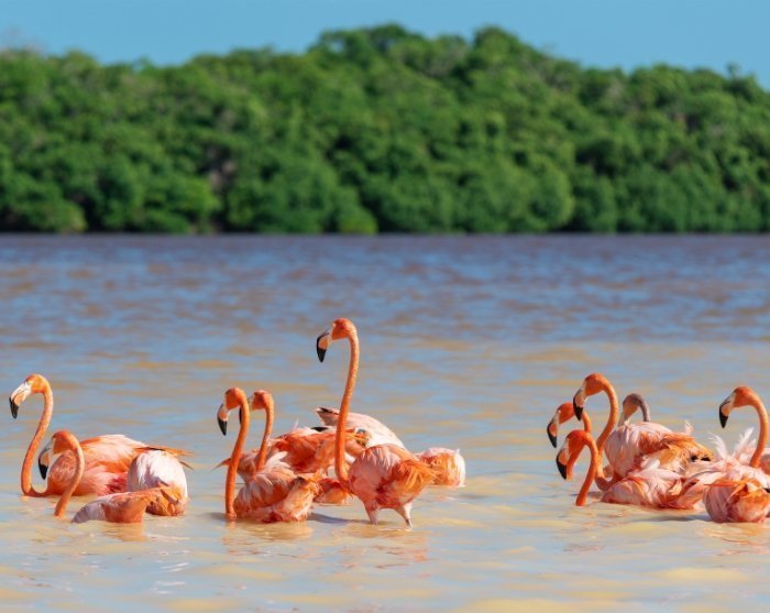 Ved ankomst til Celestun skal du ud på en oplevelsesrig bådtur i nationalparken, som er kendt for sine mangrovetræer og imponerende fuglebestand. I store dele af året kan du opleve flokke af fascinerende lyserøde flamingoer, som sammen med en masse andre eksotiske fugle har hjemsted her. Der er generelt et rigt dyreliv i Celestun, så det er med at holde øjnene åbne – måske du også er heldig at spotte en krokodille undervejs. Bådturen varer ca. halvanden time, hvor guiden vil dele ud af sin viden om området.