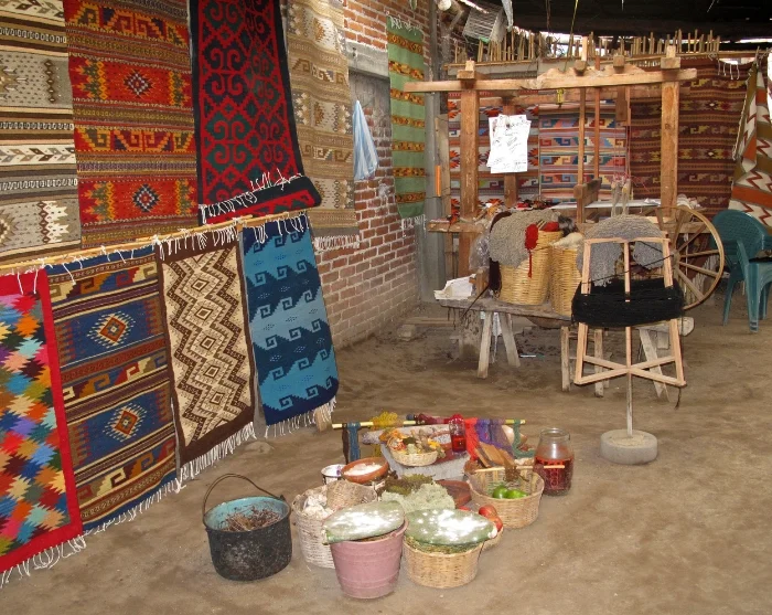 Turen fortsætter til Teotitlan, som er kendt for sine smukke, håndvævede uldtæpper. Her kan du opleve den traditionelle væveteknik, der er gået i arv gennem generationer.