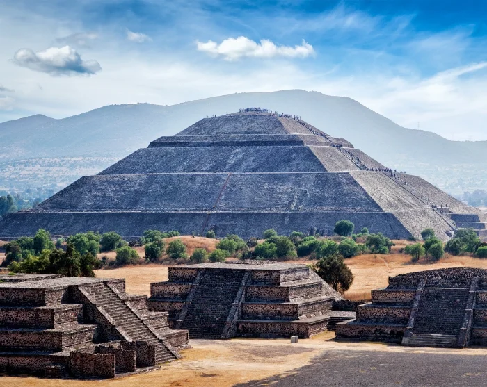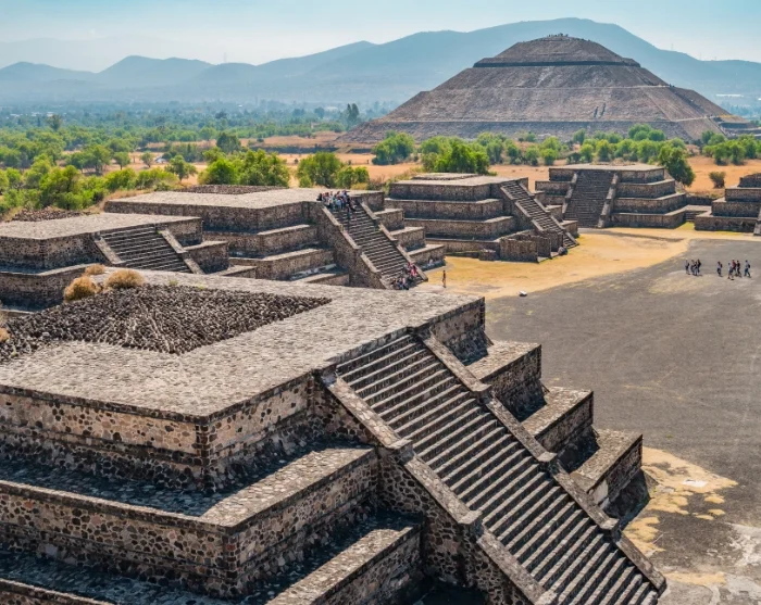 Herefter går turen videre til et af Latinamerikas største ruinkomplekser, tempelbyen Teotihuacán, som betyder ”Stedet hvor mennesker blev guder”. Du går langs den 3 km lange Avenida de los Muertos (Dødens Avenue), hvor du ser de enorme templer og pyramider, som kan dateres tilbage til 200 år f.Kr., men som er bygget over en lang periode. Her kan nævnes Quetzalcoatl-templet, hvor flere end 200 ofrede krigsfanger er fundet, Quetzalpapalotl-paladset, Månepyramiden (60 m) og Solpyramiden (70 m), som er bygget i centrum af byen ovenpå en 100 m lang hule, hvor det siges, at menneskeheden blev skabt.