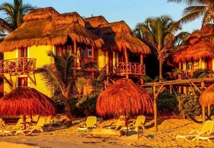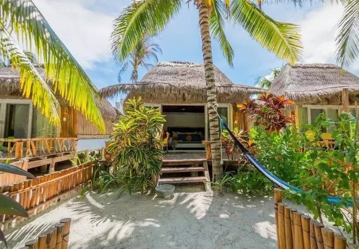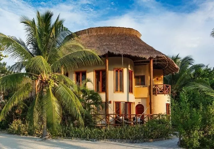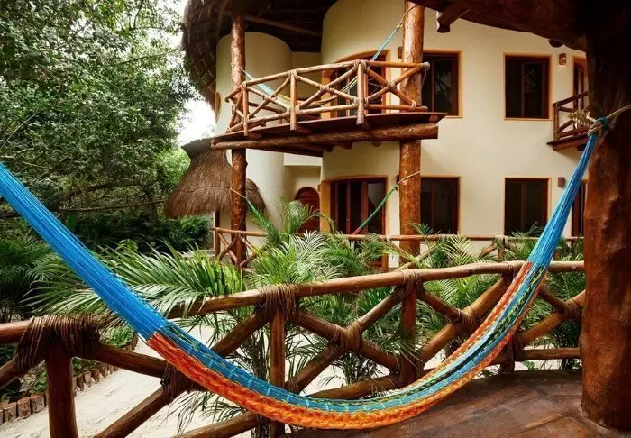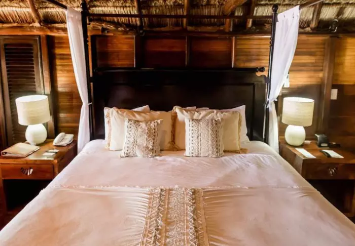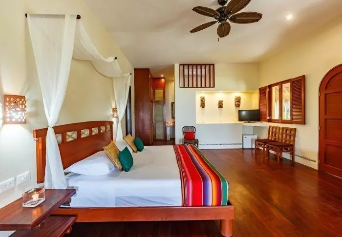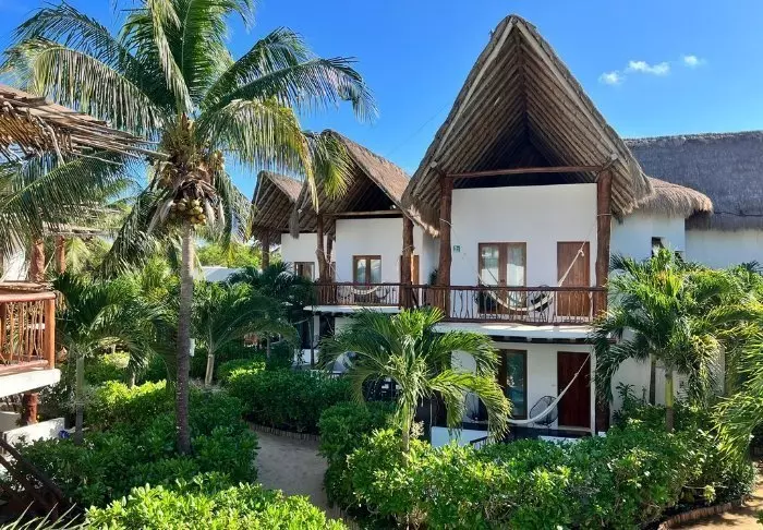 Du bor i charmerende hytter bygget i naturmaterialer bl.a. med tag lavet af tørrede palmeblade. Værelserne er rummelige og elegant indrettede med en harmonisk blanding af lyse farver, farverige mexicanske tæpper og puder samt smukke mørke trægulve og møbler.