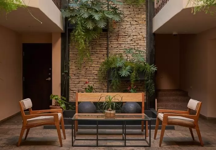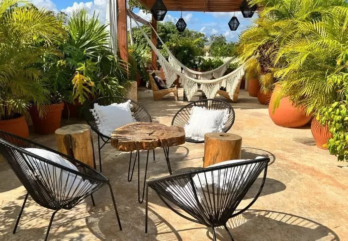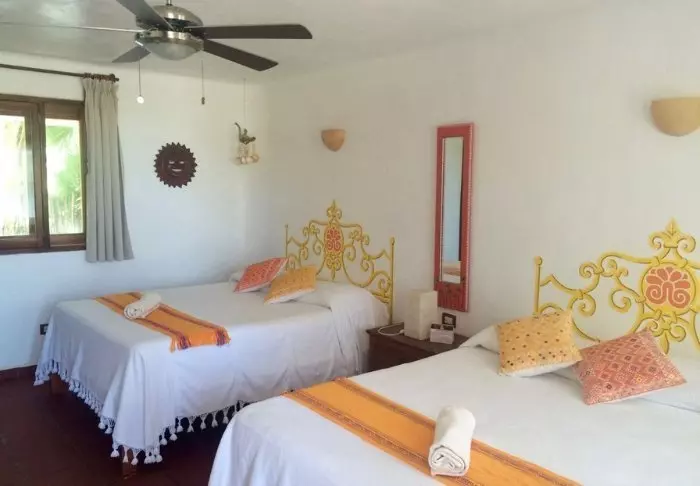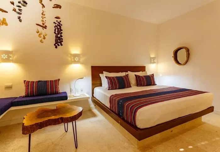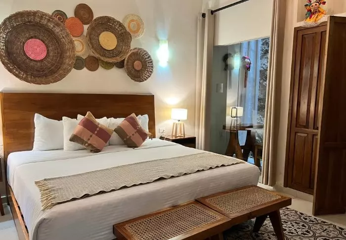 Hotellet har 33 værelser, der alle er indrettet lyst i rustik mexicansk stil med træmøbler og dekorative detaljer, der tilføjer stedet en afslappet og hjemlig følelse.