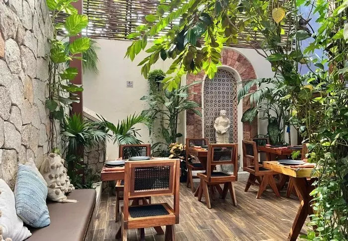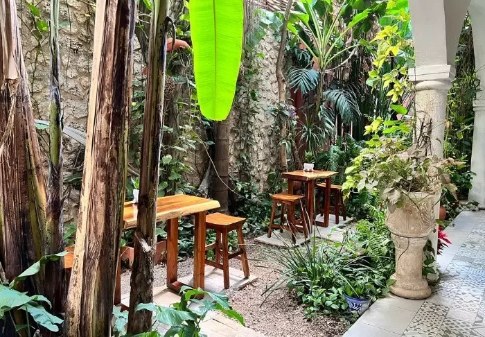 Morgenmaden serveres i den charmerende gårdhave, og i de omkringliggende gader finder du et væld af spisesteder, hvor du har mulighed for at prøve forskellige traditionelle mexicanske retter.
