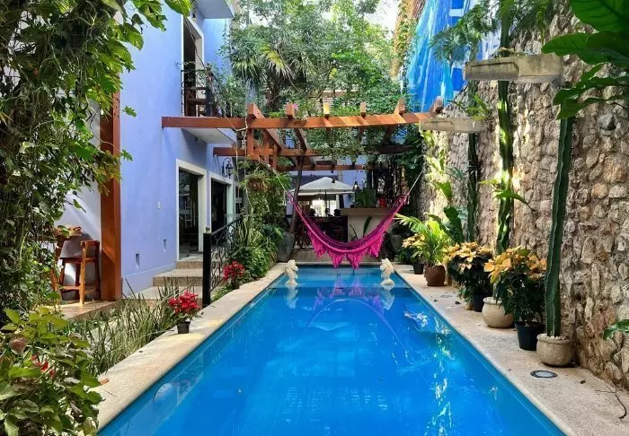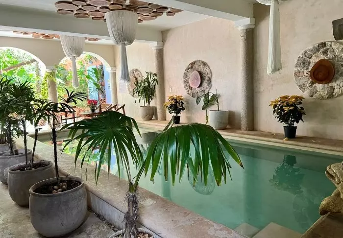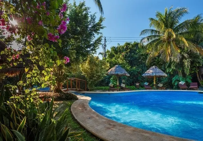 Tag en forfriskende dukkert i poolen, der minder om en naturlig cenote, eller nyd en kølig drink på en solseng under solens stråler.