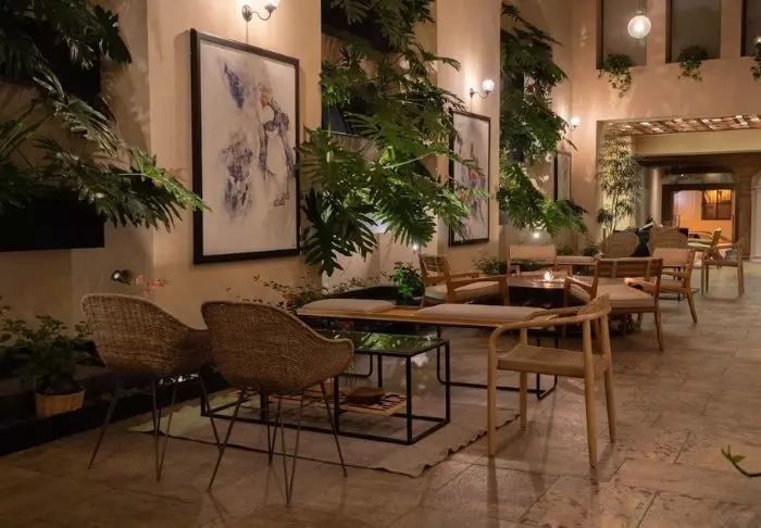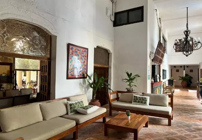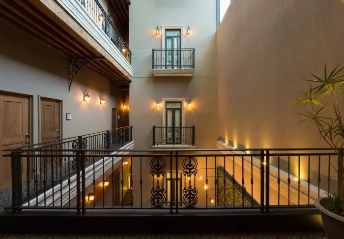 Hotellet er også en historisk kolonitidsbygning med mange smukke detaljer, som buer i loftet og farverige kakler i gulve og med et hyggeligt atrium i midten af bygningen.