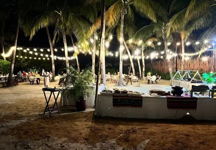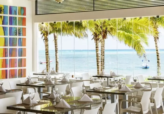 Restauranten ligger direkte på stranden og her kan du nyde eksklusive retter til lyden af det caribiske havs brusen.