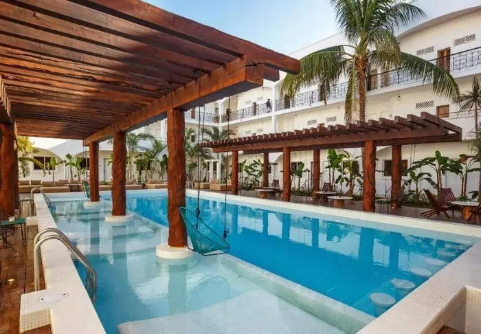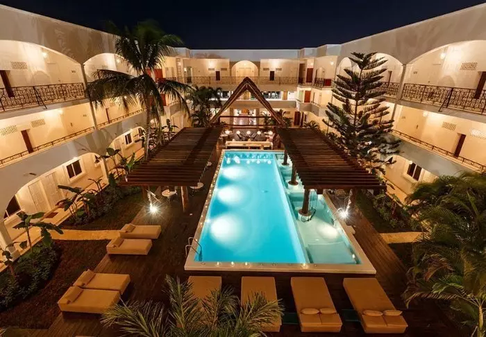Hotellet er opført i typisk mexicansk stil, hvor værelserne danner ramme for hotellets midte. Her findes en sand oase med palmer, pool og barområde. Dette er mødested for store, såvel som små, og her mærkes en skøn, afslappet stemning. Her er der rig mulighed for at slappe af med en god bog, mens du sipper til en drink og lader den tropiske vibe trænge ind.