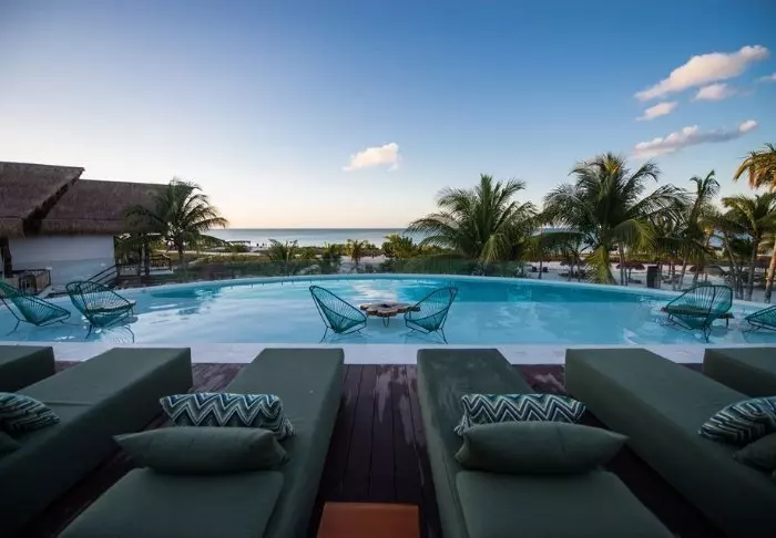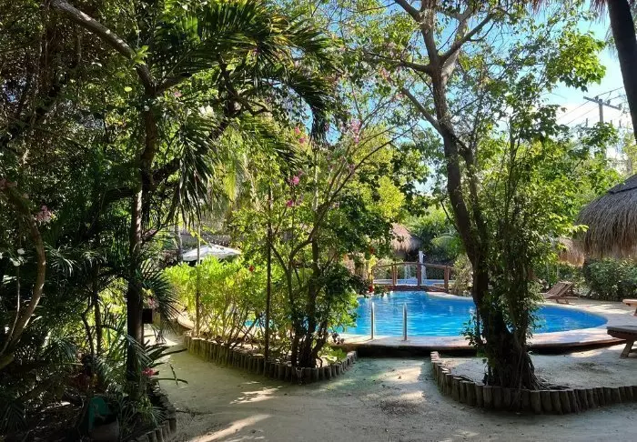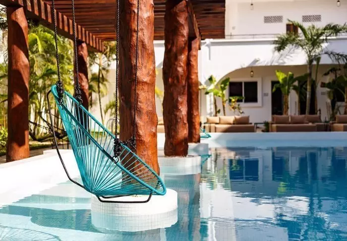 I forlængelse af hovedrestauranten ligger swimmingpoolen og den tilhørende poolbar, hvor du kan svømme hen efter noget koldt at drikke, uden at skulle op af poolen først. Der er både solsenge omkring poolen og i hotellets have, hvor du kan læse en god bog i skyggen af et palmetræ. Krydser du den lille sandvej, er du på Holboxs berømte strand med azurblåt vand og en lun havbrise. Her er der også solsenge til fri afbenyttelse, og du kan selvfølgelig bestille mad og drikkevarer herned og forkæle dig selv lidt ekstra.