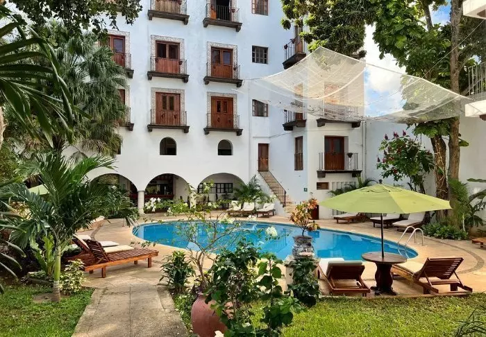Dette hotel er valgt pga. sin kolonitidscharme og ikke mindst den unikke beliggenhed i hjertet af Mérida. Hvis du ønsker et værelse med mere komfort, anbefaler vi at du opgraderer til Hotel Casa Lucia.
