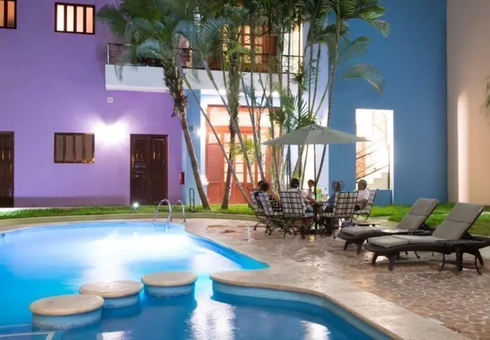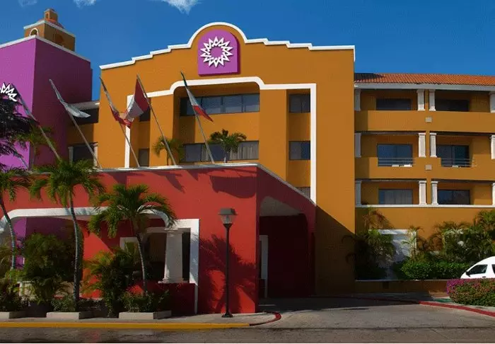Du bliver budt velkommen til et farverigt hotel, der er malet i en palette af gule, røde og lilla farver, der giver stedet en hyggelig mexicansk stemning.