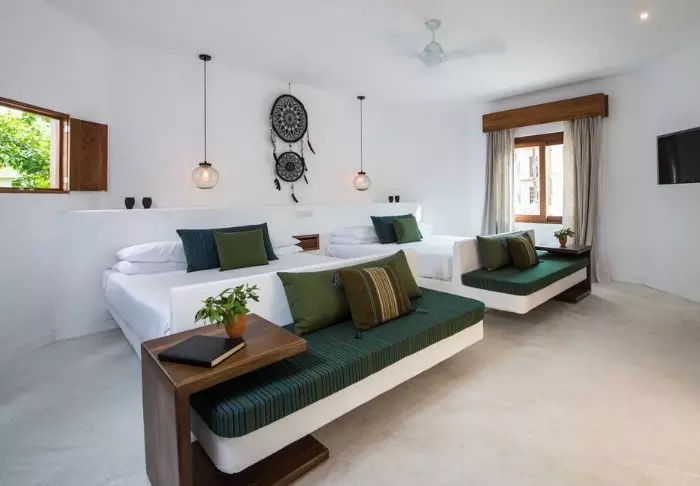 Dette intime tilflugtssted byder på fine deltaljede værelser, som er udstyret med aircondition, loftvifte, wi-fi og værdiboks. Her er blot 9 værelser, som alle har egen terrasse. Her har du mulighed for at falde i søvn til lyden af bølgernes brusen. Når du vågner, kan du lægge dig ud i hængekøjen, mens du nyder, hvordan solen lige så stille dukker op i horisonten og maler klare abstrakte farver hen over himlen.