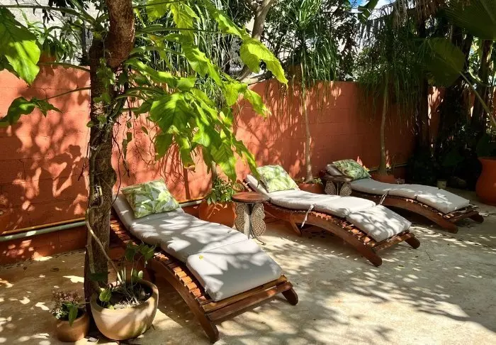 Når du trænger til et hvil efter en oplevelsesrig dag, kan du finde ro på en solvogn i den frodige gårdhave eller tage en bog med op på en af tagterrasserne og lægge dig godt til rette i en af de hæklede hængekøjer. Der findes to små pools på hotellet: en under åben himmel og en anden, som er overdækket.