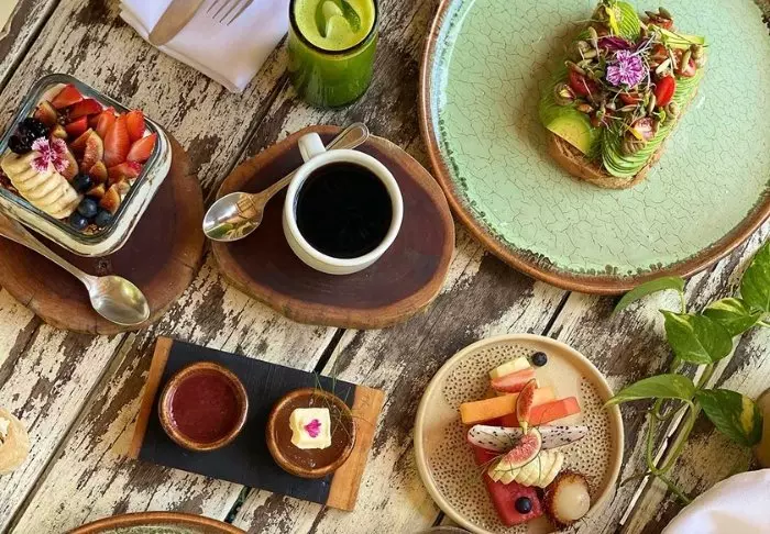 Hotellet har 2 restauranter: en hovedrestaurant, som har åbent hele dagen, og en sushirestaurant, der kun har åbent om aftenen. I hovedrestauranten serveres din inkluderede morgenmad som overdådig buffet med et stort udvalg af frugt, brød, kager, æg og lækker friskpresset juice. Det er intet mindre end magisk at nyde sin morgenmad under åben himmel i tropiske omgivelser til lyden af bølgerne, der blidt slår mod kysten.