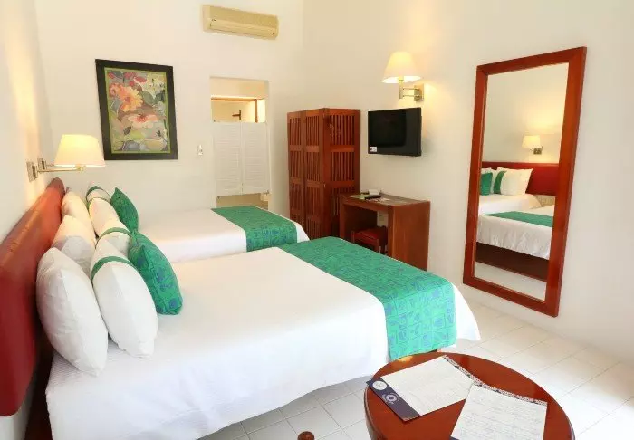 Alle værelser er udstyret med aircondition, wi-fi, TV, mini køleskab, værdiboks og eget badeværelse med hårtørrer. Fra værelsets balkon er der udsigt til hotellets tropiske have, og det er oplagt at smække benene op i den tilhørende hængekøje for en sand feriefølelse.