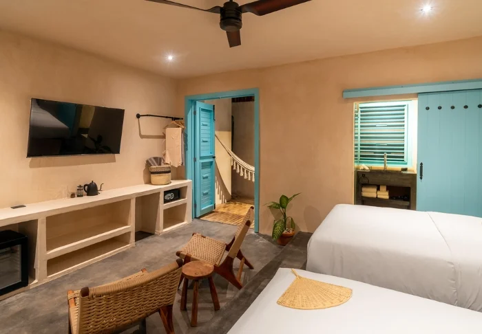 Hotellet har 12 værelser, der alle er moderne indrettet i varme, neutrale toner med et strejf af farver. Værelserne er udstyret med aircondition, loftvifte, wi-fi, minibar, tv, værdiboks samt te- og kaffefaciliteter. Alle værelser har et tilhørende lille udeområde med en hængekøje.