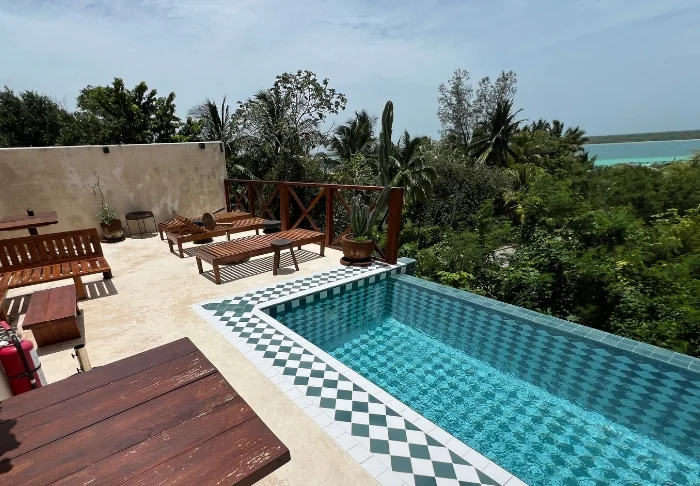 Fra hotellets pool og terrasse kan du nyde udsigten ud over området med den iøjnefaldende blå lagune. Tag en forfriskende dukkert eller nyd en kølig drink, mens du slapper af på en solseng.