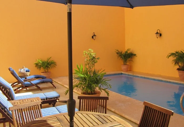 I gårdhaven finder du en lille, indbydende pool og en fredelig terrasse, hvor du kan slappe af efter dagens oplevelser. Morgenmaden serveres i den hyggelige patio, og lige udenfor hotellet finder du et bredt udvalg af caféer og restauranter, hvor du kan smage på spændende lokale specialiteter.